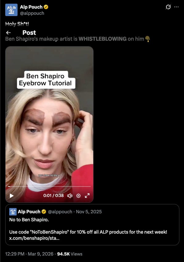 The only growth sector in America’s economy right now: Ben Shapiro’s eyebrows.