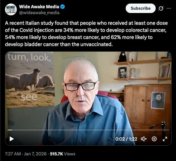 First: a recent Italian study has found that people who received at least one dose of the COVID “vaccines” are 34% more likely to develop colorectal cancer than the unvaccinated.