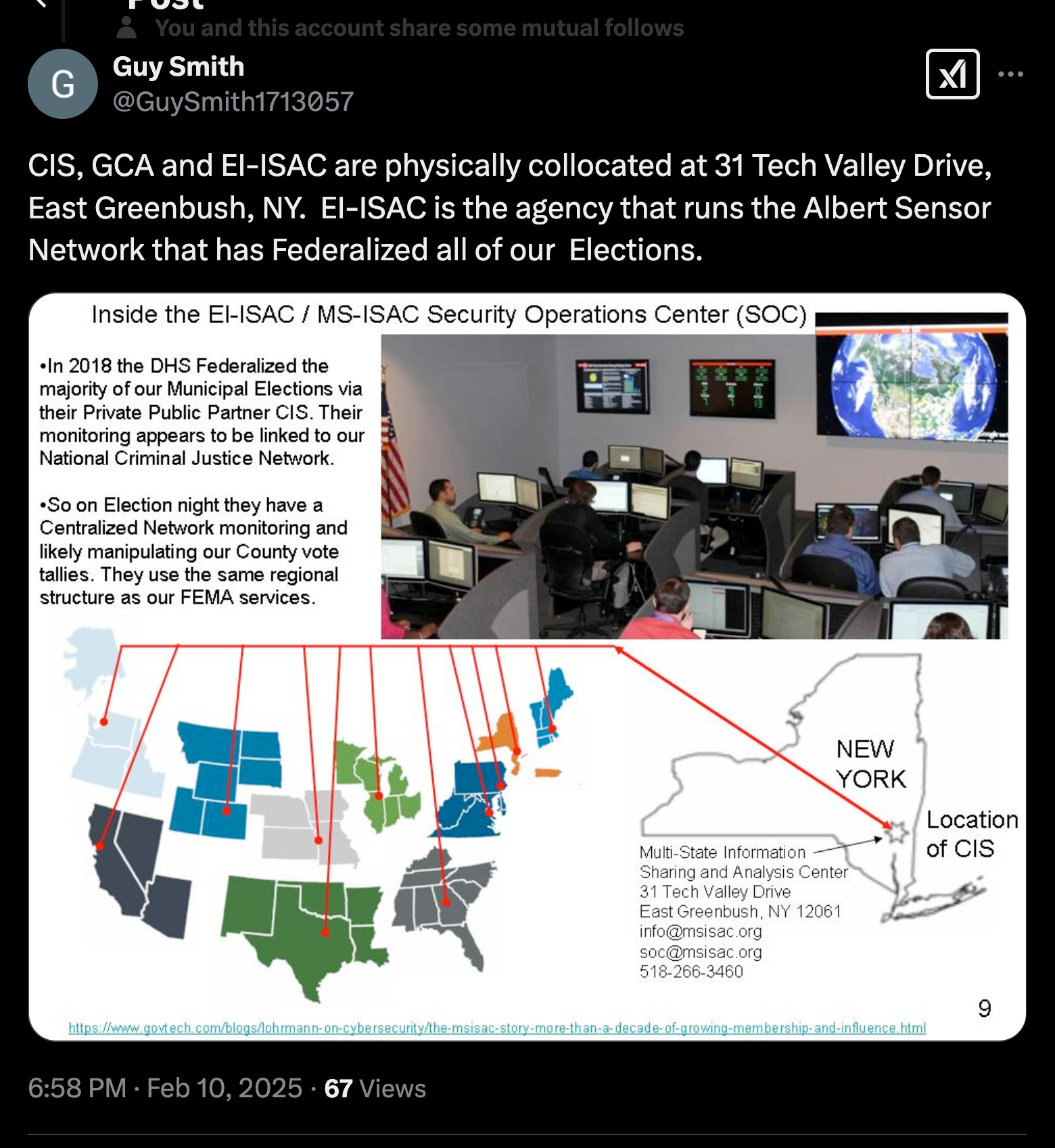 That’s right: all election records go through the Center for Internet Security — which means those election records are centralized.